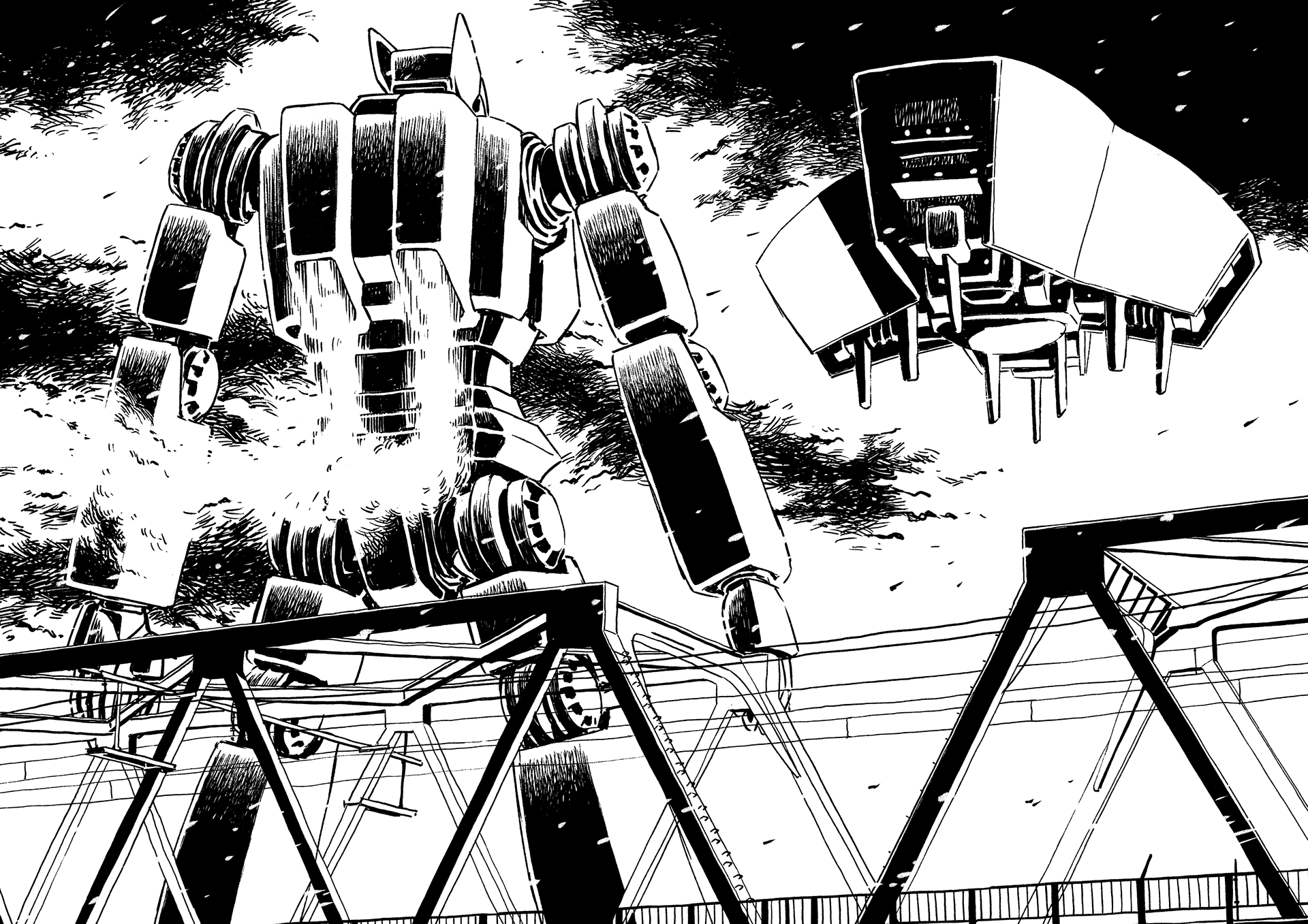 ペン画タッチでSFをテーマに描いています